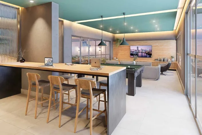 - Entrega com infraestrutura: ar-condicionado, fechadura eletrônica, torneiras com arejador, balcadas em granito